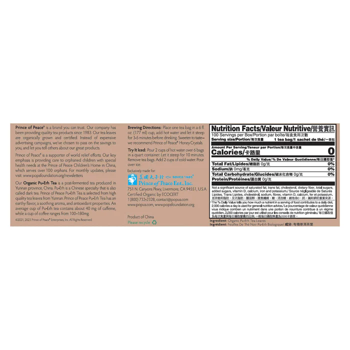 GinGinGood offers daily tea bag drinks: Organic Pu-Erh Tea from the brand of Prince Of Peace.